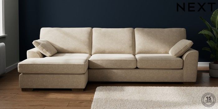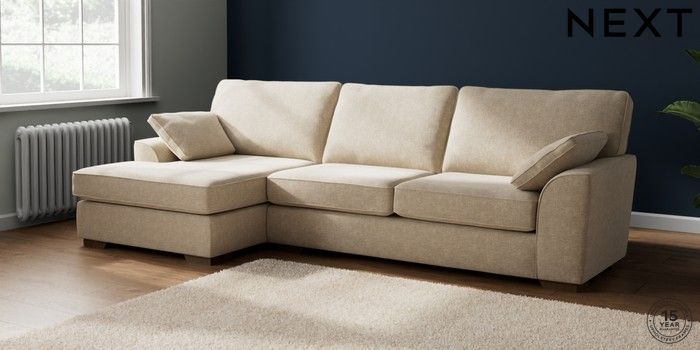 7.2.10 Stamford Large Sofa Chaise - Left Hand Chunky Weave Cream Large Square Angle - Mid | Made Click here to use our website with more accessibility support, for example screen readers