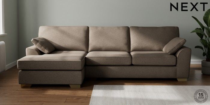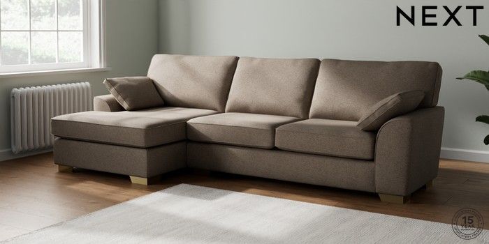 7.2.10 Stamford Large Sofa Chaise - Left Hand Chunky Weave Dark Natural Large Square Angle - Brushed Brass | Made Click here to use our website with more accessibility support, for example screen readers