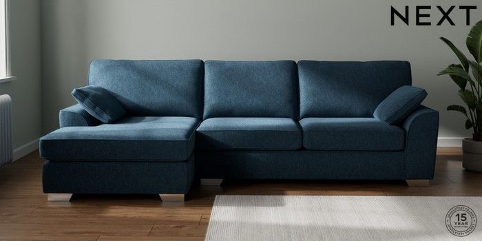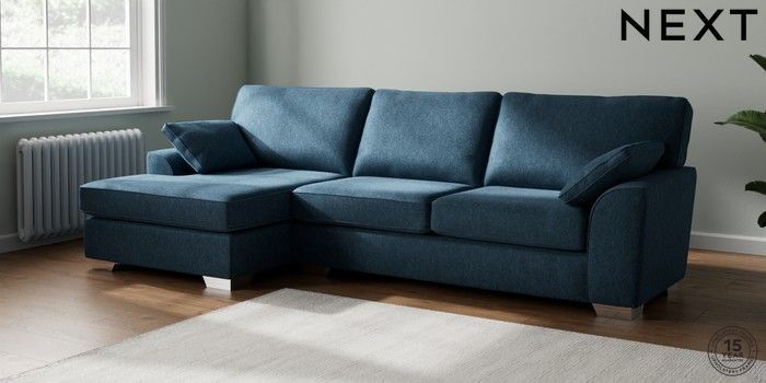 7.2.10 Stamford Large Sofa Chaise - Left Hand Cotswold Chenille Dark Blue Large Square Angle - Chrome Metal | Made Click here to use our website with more accessibility support, for example screen readers