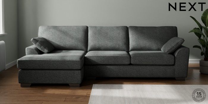7.2.10 Stamford Large Sofa Chaise - Left Hand Cotswold Chenille Dark Grey Large Square Angle - Gunmetal | Made Click here to use our website with more accessibility support, for example screen readers