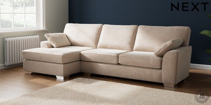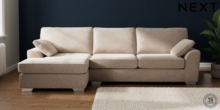 7.2.10 Stamford Large Sofa Chaise - Left Hand Cotswold Chenille Light Natural Large Square Angle - Chrome Metal | Made Click here to use our website with more accessibility support, for example screen readers