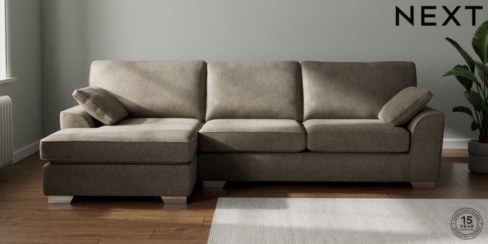 7.2.10 Stamford Large Sofa Chaise - Left Hand Cotswold Chenille Mid Mink Brown Large Square Angle - Chrome Metal | Made Click here to use our website with more accessibility support, for example screen readers
