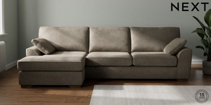 7.2.10 Stamford Large Sofa Chaise - Left Hand Cotswold Chenille Mid Mink Brown Large Square Angle - Mid | Made Click here to use our website with more accessibility support, for example screen readers