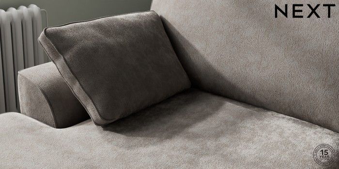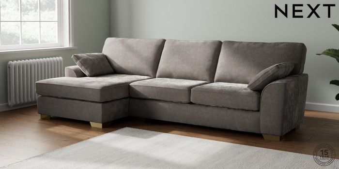 7.2.10 Stamford Large Sofa Chaise - Left Hand Distressed Velour French Grey Large Square Angle - Brushed Brass | Made Click here to use our website with more accessibility support, for example screen readers