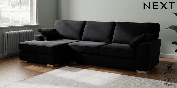 7.2.10 Stamford Large Sofa Chaise - Left Hand Fine Chenille Easy Clean Black Large Square Angle - Light | Made Click here to use our website with more accessibility support, for example screen readers