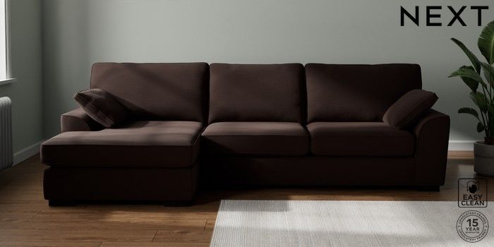 7.2.10 Stamford Large Sofa Chaise - Left Hand Fine Chenille Easy Clean Chocolate Brown Large Square Angle - Dark | Made Click here to use our website with more accessibility support, for example screen readers