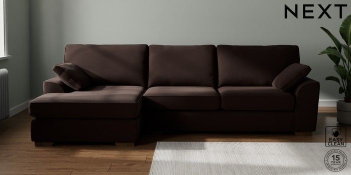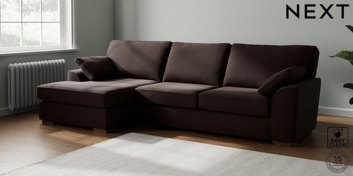 7.2.10 Stamford Large Sofa Chaise - Left Hand Fine Chenille Easy Clean Chocolate Brown Large Square Angle - Mid | Made Click here to use our website with more accessibility support, for example screen readers