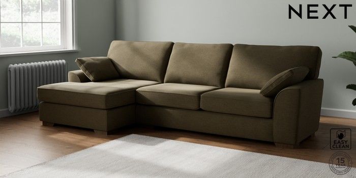 7.2.10 Stamford Large Sofa Chaise - Left Hand Fine Chenille Easy Clean Dark Moss Green Large Square Angle - Mid | Made Click here to use our website with more accessibility support, for example screen readers