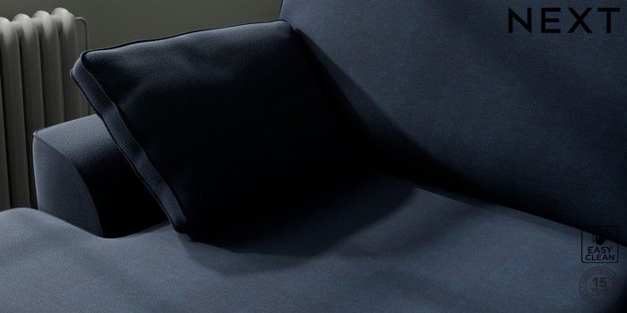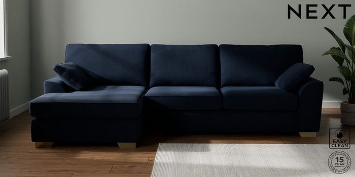 7.2.10 Stamford Large Sofa Chaise - Left Hand Fine Chenille Easy Clean Dark Navy Blue Large Square Angle - Brushed Brass | Made Click here to use our website with more accessibility support, for example screen readers