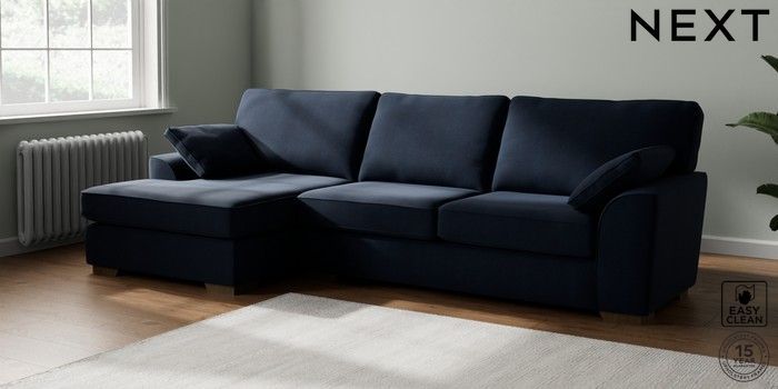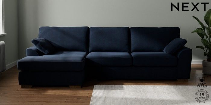7.2.10 Stamford Large Sofa Chaise - Left Hand Fine Chenille Easy Clean Dark Navy Blue Large Square Angle - Mid | Made Click here to use our website with more accessibility support, for example screen readers