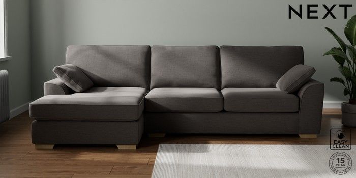 7.2.10 Stamford Large Sofa Chaise - Left Hand Fine Chenille Easy Clean Dark Smoke Grey Large Square Angle - Light | Made Click here to use our website with more accessibility support, for example screen readers