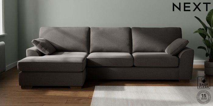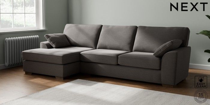 7.2.10 Stamford Large Sofa Chaise - Left Hand Fine Chenille Easy Clean Dark Smoke Grey Large Square Angle - Mid | Made Click here to use our website with more accessibility support, for example screen readers