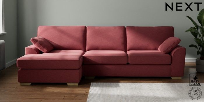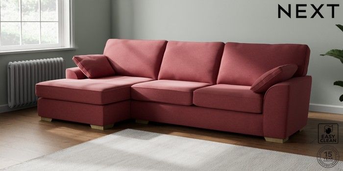7.2.10 Stamford Large Sofa Chaise - Left Hand Fine Chenille Easy Clean Mid Pink Large Square Angle - Light | Made Click here to use our website with more accessibility support, for example screen readers