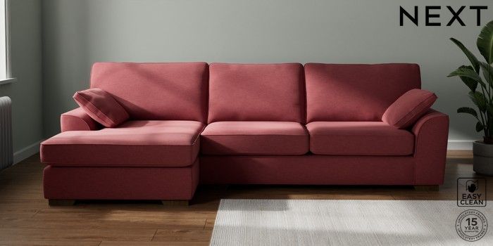 7.2.10 Stamford Large Sofa Chaise - Left Hand Fine Chenille Easy Clean Mid Pink Large Square Angle - Mid | Made Click here to use our website with more accessibility support, for example screen readers