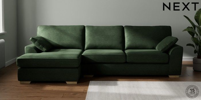 7.2.10 Stamford Large Sofa Chaise - Left Hand Luxe Chenille Dark Green Large Square Angle - Light | Made Click here to use our website with more accessibility support, for example screen readers