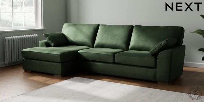 7.2.10 Stamford Large Sofa Chaise - Left Hand Luxe Chenille Dark Green Large Square Angle - Mid | Made Click here to use our website with more accessibility support, for example screen readers