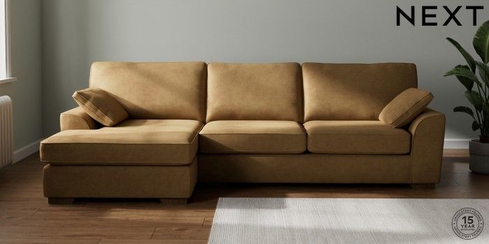 7.2.10 Stamford Large Sofa Chaise - Left Hand Luxe Chenille Honey Yellow Large Square Angle - Mid | Made Click here to use our website with more accessibility support, for example screen readers