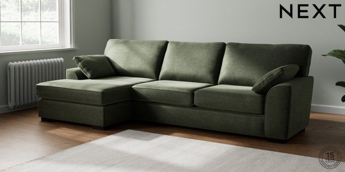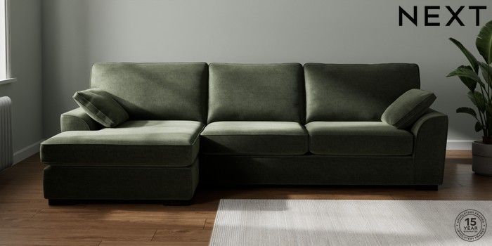 7.2.10 Stamford Large Sofa Chaise - Left Hand Luxe Chenille Mid Green Large Square Angle - Dark | Made Click here to use our website with more accessibility support, for example screen readers
