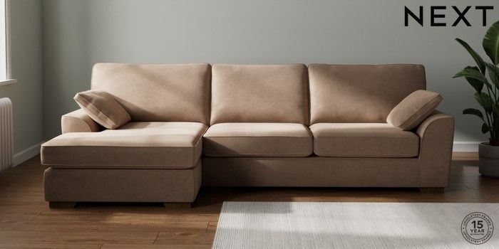 7.2.10 Stamford Large Sofa Chaise - Left Hand Luxe Chenille Mid Natural Large Square Angle - Mid | Made Click here to use our website with more accessibility support, for example screen readers