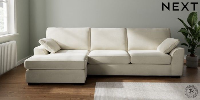 7.2.10 Stamford Large Sofa Chaise - Left Hand Luxe Chenille Oyster Large Square Angle - Dark | Made Click here to use our website with more accessibility support, for example screen readers