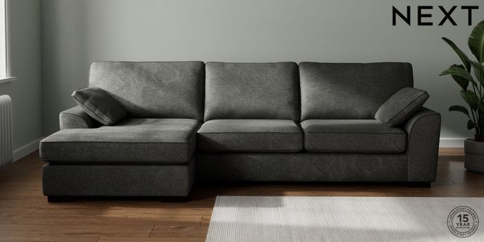 7.2.10 Stamford Large Sofa Chaise - Left Hand Plush Chenille Dark Grey Large Square Angle - Dark | Made Click here to use our website with more accessibility support, for example screen readers