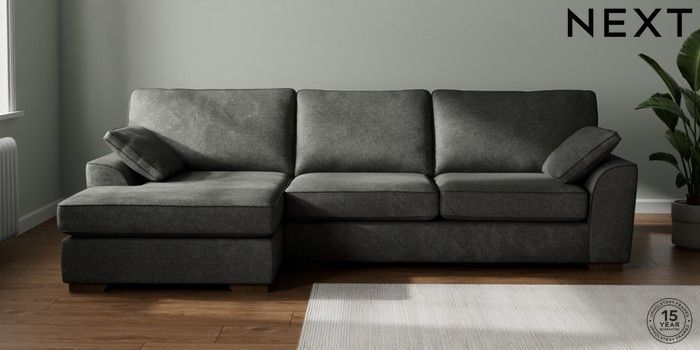 7.2.10 Stamford Large Sofa Chaise - Left Hand Plush Chenille Dark Grey Large Square Angle - Mid | Made Click here to use our website with more accessibility support, for example screen readers