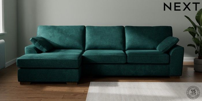 7.2.10 Stamford Large Sofa Chaise - Left Hand Plush Chenille Dark Teal Green Large Square Angle - Mid | Made Click here to use our website with more accessibility support, for example screen readers