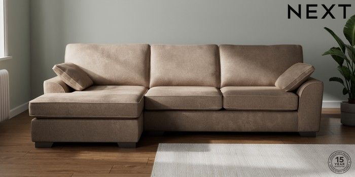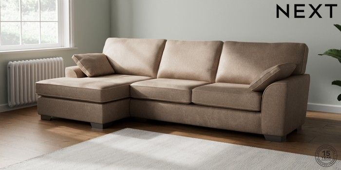 7.2.10 Stamford Large Sofa Chaise - Left Hand Plush Chenille Mid Natural Large Square Angle - Gunmetal | Made Click here to use our website with more accessibility support, for example screen readers