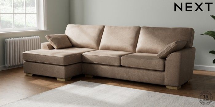 7.2.10 Stamford Large Sofa Chaise - Left Hand Plush Chenille Mid Natural Large Square Angle - Light | Made Click here to use our website with more accessibility support, for example screen readers