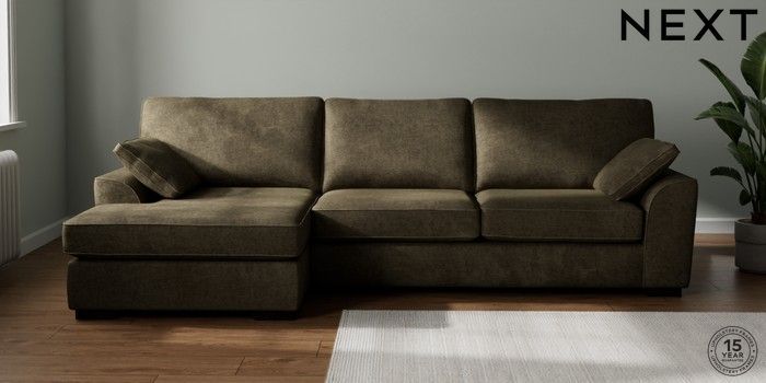 7.2.10 Stamford Large Sofa Chaise - Left Hand Plush Chenille Moss Green Large Square Angle - Dark | Made Click here to use our website with more accessibility support, for example screen readers