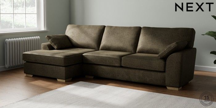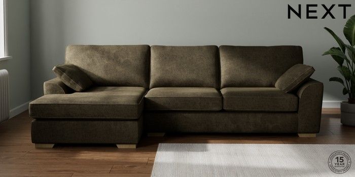 7.2.10 Stamford Large Sofa Chaise - Left Hand Plush Chenille Moss Green Large Square Angle - Light | Made Click here to use our website with more accessibility support, for example screen readers