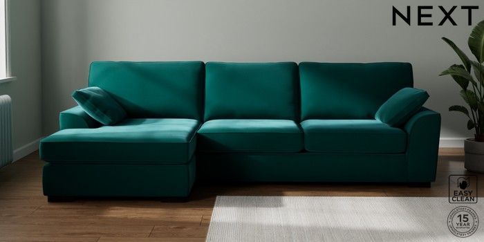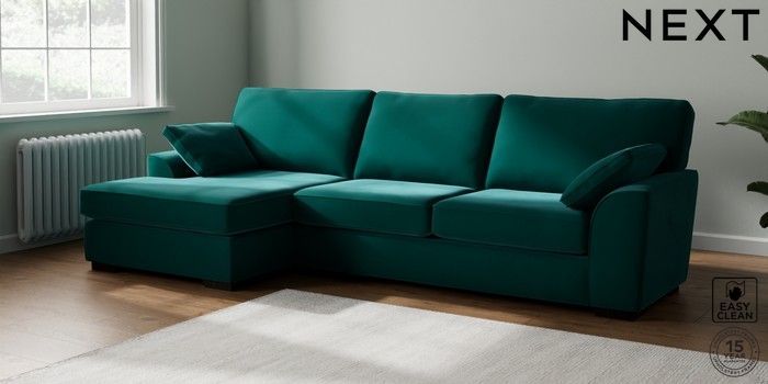 7.2.10 Stamford Large Sofa Chaise - Left Hand Plush Velvet Easy Clean Juniper Green Large Square Angle - Dark | Made Click here to use our website with more accessibility support, for example screen readers