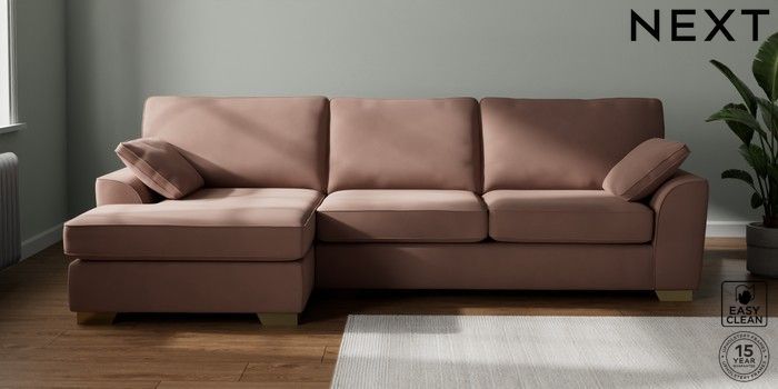7.2.10 Stamford Large Sofa Chaise - Left Hand Plush Velvet Easy Clean Mid Natural Large Square Angle - Brushed Brass | Made Click here to use our website with more accessibility support, for example screen readers