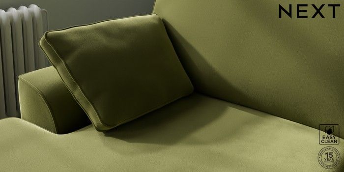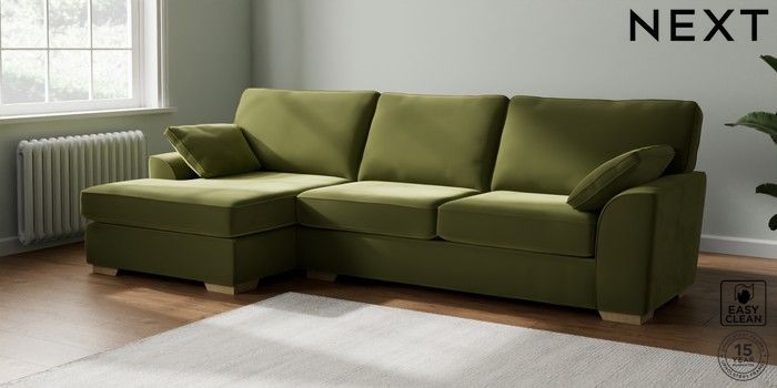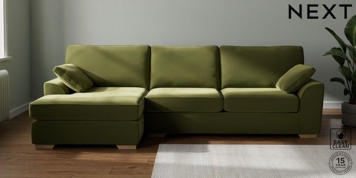 7.2.10 Stamford Large Sofa Chaise - Left Hand Plush Velvet Easy Clean Mid Olive Green Large Square Angle - Light | Made Click here to use our website with more accessibility support, for example screen readers