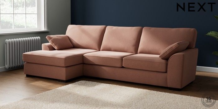 7.2.10 Stamford Large Sofa Chaise - Left Hand Relaxed Linen Look Light Rust Brown Large Square Angle - Dark | Made Click here to use our website with more accessibility support, for example screen readers