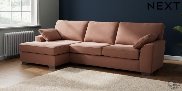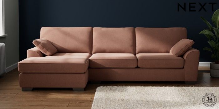 7.2.10 Stamford Large Sofa Chaise - Left Hand Relaxed Linen Look Light Rust Brown Large Square Angle - Gunmetal | Made Click here to use our website with more accessibility support, for example screen readers