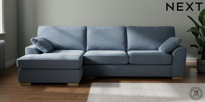 7.2.10 Stamford Large Sofa Chaise - Left Hand Relaxed Linen Look Mid Blue Large Square Angle - Light | Made Click here to use our website with more accessibility support, for example screen readers