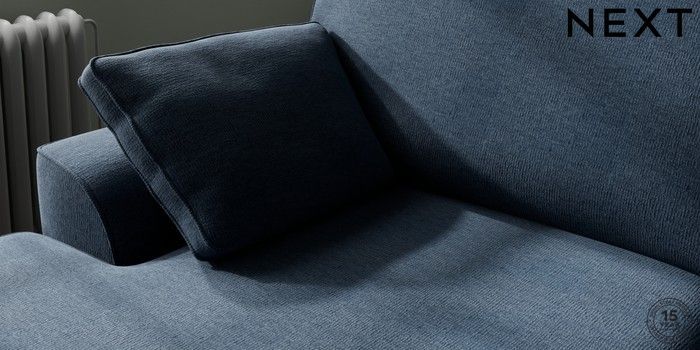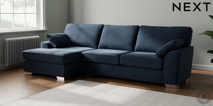 7.2.10 Stamford Large Sofa Chaise - Left Hand Ripple Chenille Dark Blue Large Square Angle - Chrome Metal | Made Click here to use our website with more accessibility support, for example screen readers