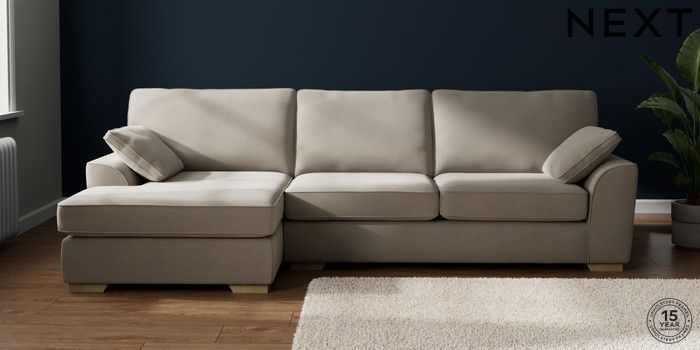 7.2.10 Stamford Large Sofa Chaise - Left Hand Ripple Chenille Light Natural Large Square Angle - Light | Made Click here to use our website with more accessibility support, for example screen readers