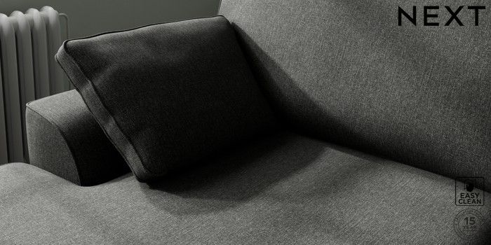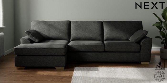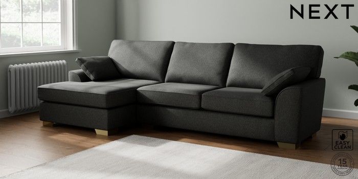 7.2.10 Stamford Large Sofa Chaise - Left Hand Tweedy Blend Easy Clean Charcoal Grey Large Square Angle - Brushed Brass | Made Click here to use our website with more accessibility support, for example screen readers