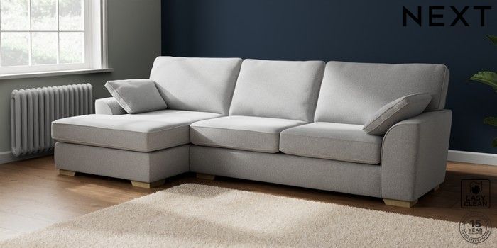 7.2.10 Stamford Large Sofa Chaise - Left Hand Tweedy Blend Easy Clean Light Silver Grey Large Square Angle - Light | Made Click here to use our website with more accessibility support, for example screen readers