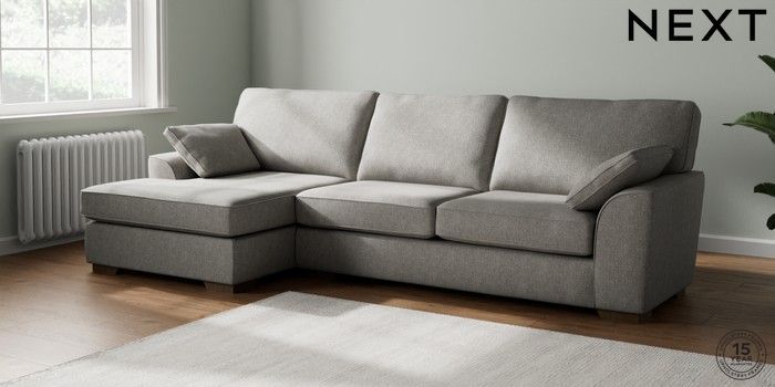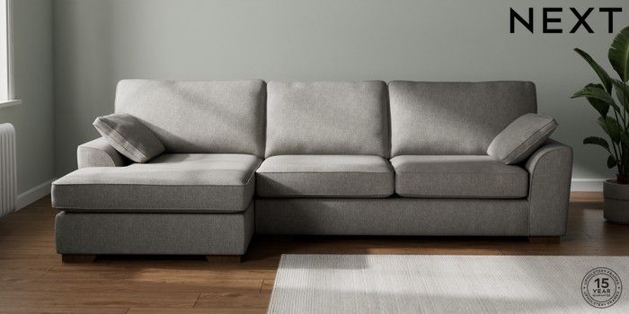 7.2.10 Stamford Large Sofa Chaise - Left Hand Tweedy Chenille Mid Grey Large Square Angle - Mid | Made Click here to use our website with more accessibility support, for example screen readers