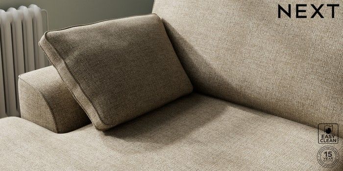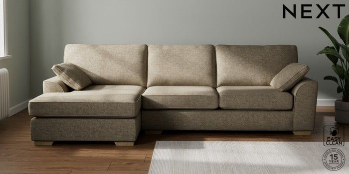 7.2.10 Stamford Large Sofa Chaise - Left Hand Woven Chenille Easy Clean Mid Natural Large Square Angle - Light | Made Click here to use our website with more accessibility support, for example screen readers