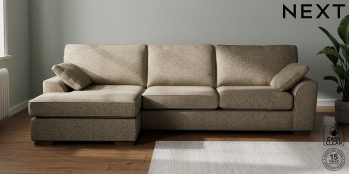 7.2.10 Stamford Large Sofa Chaise - Left Hand Woven Chenille Easy Clean Mid Natural Large Square Angle - Mid | Made Click here to use our website with more accessibility support, for example screen readers