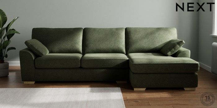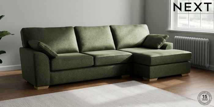 7.2.10 Stamford Large Sofa Chaise - Right Hand Boucle Chenille Dark Moss Green Large Square Angle - Light | Made Click here to use our website with more accessibility support, for example screen readers