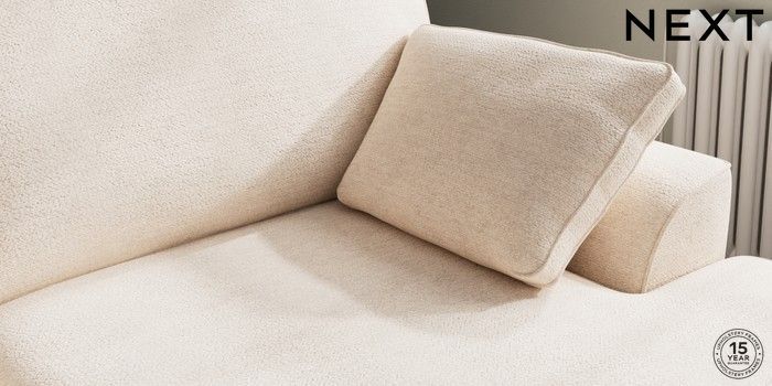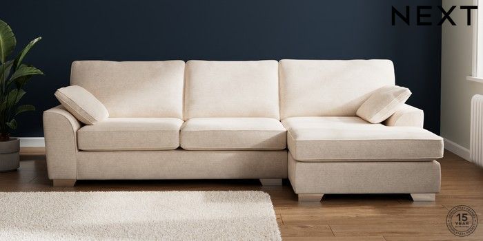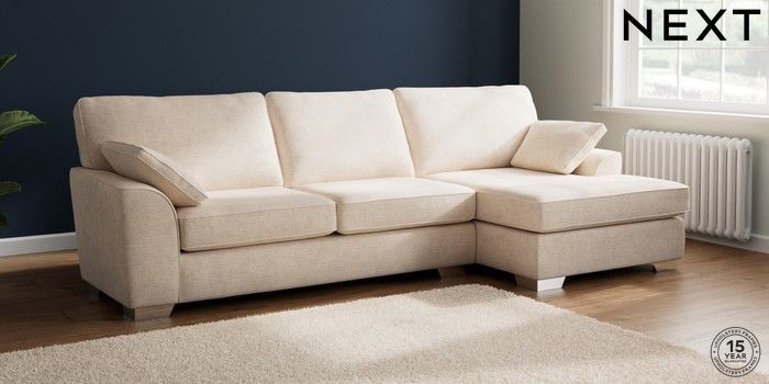 7.2.10 Stamford Large Sofa Chaise - Right Hand Boucle Chenille Oyster Large Square Angle - Chrome Metal | Made Click here to use our website with more accessibility support, for example screen readers