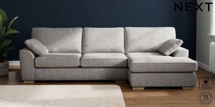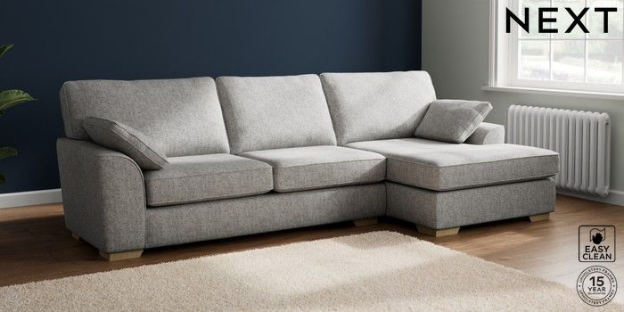 7.2.10 Stamford Large Sofa Chaise - Right Hand Chunky Boucle Easy Clean Light Grey Large Square Angle - Light | Made Click here to use our website with more accessibility support, for example screen readers