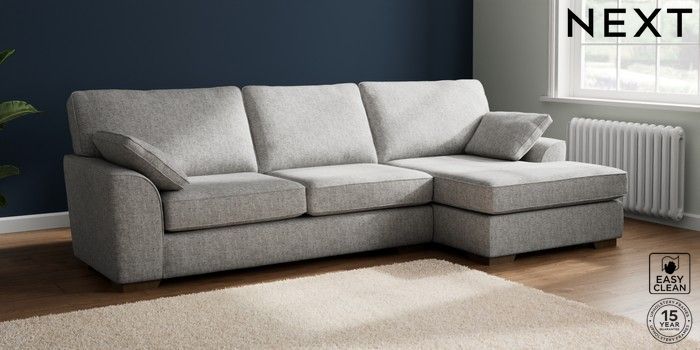 7.2.10 Stamford Large Sofa Chaise - Right Hand Chunky Boucle Easy Clean Light Grey Large Square Angle - Mid | Made Click here to use our website with more accessibility support, for example screen readers