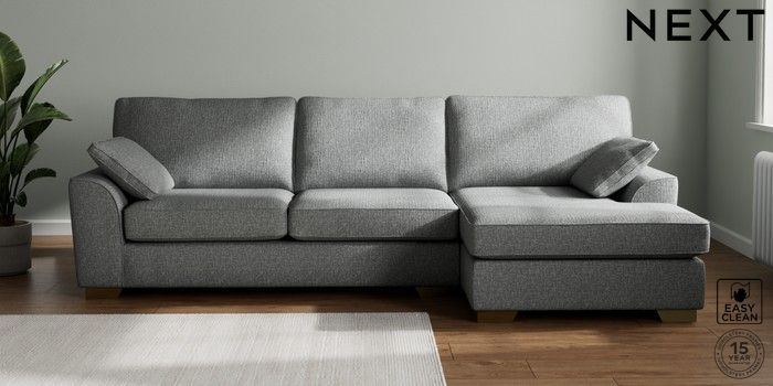 7.2.10 Stamford Large Sofa Chaise - Right Hand Chunky Boucle Easy Clean Mid Grey Large Square Angle - Brushed Brass | Made Click here to use our website with more accessibility support, for example screen readers