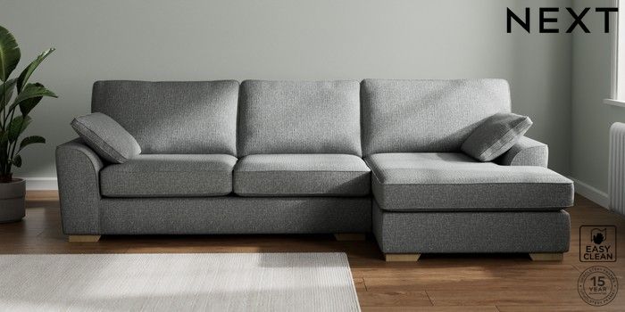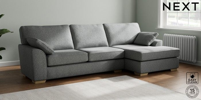 7.2.10 Stamford Large Sofa Chaise - Right Hand Chunky Boucle Easy Clean Mid Grey Large Square Angle - Light | Made Click here to use our website with more accessibility support, for example screen readers